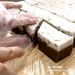 9 完全冷却后即可脱模,用塑料刀切成小块。